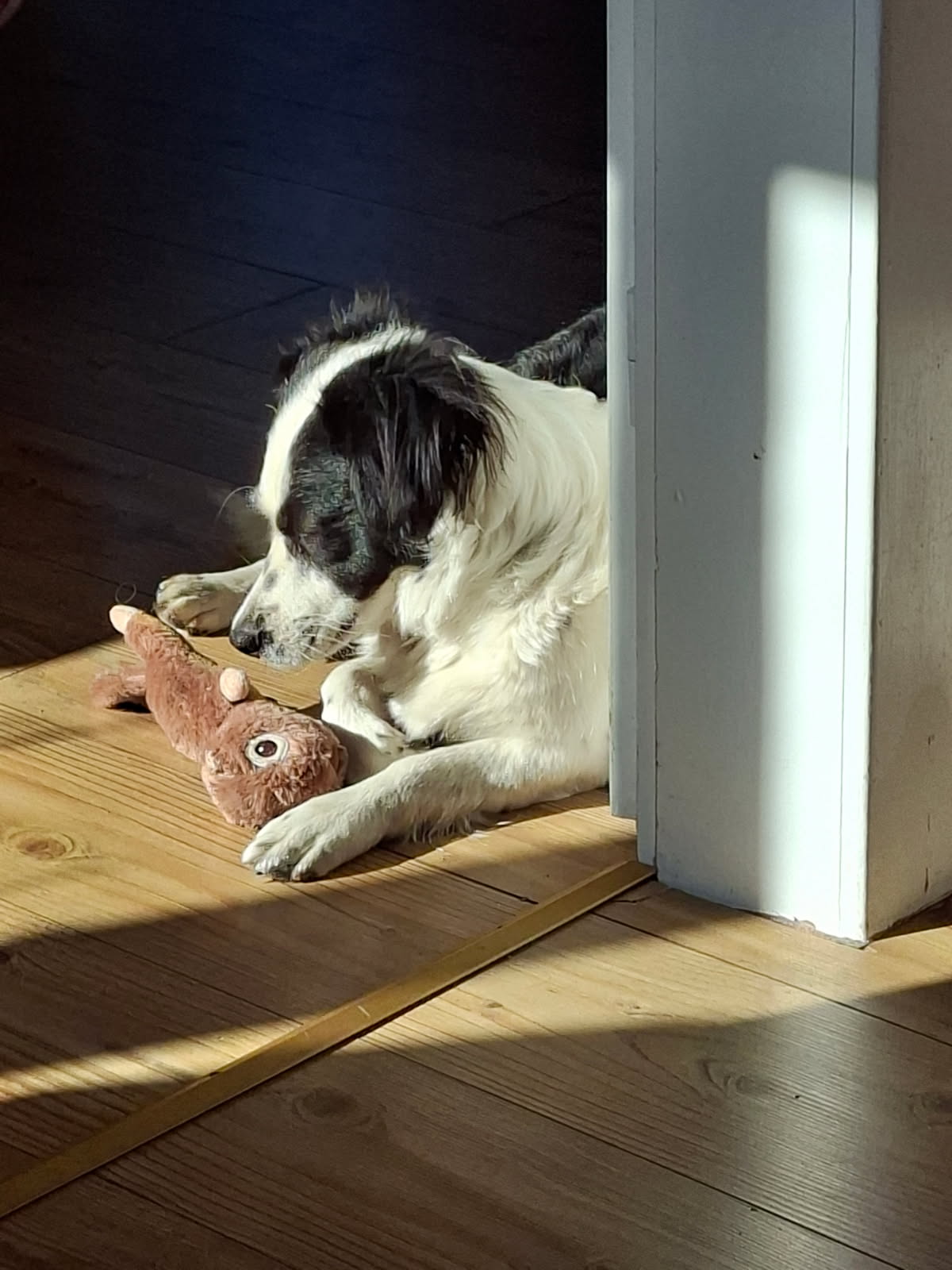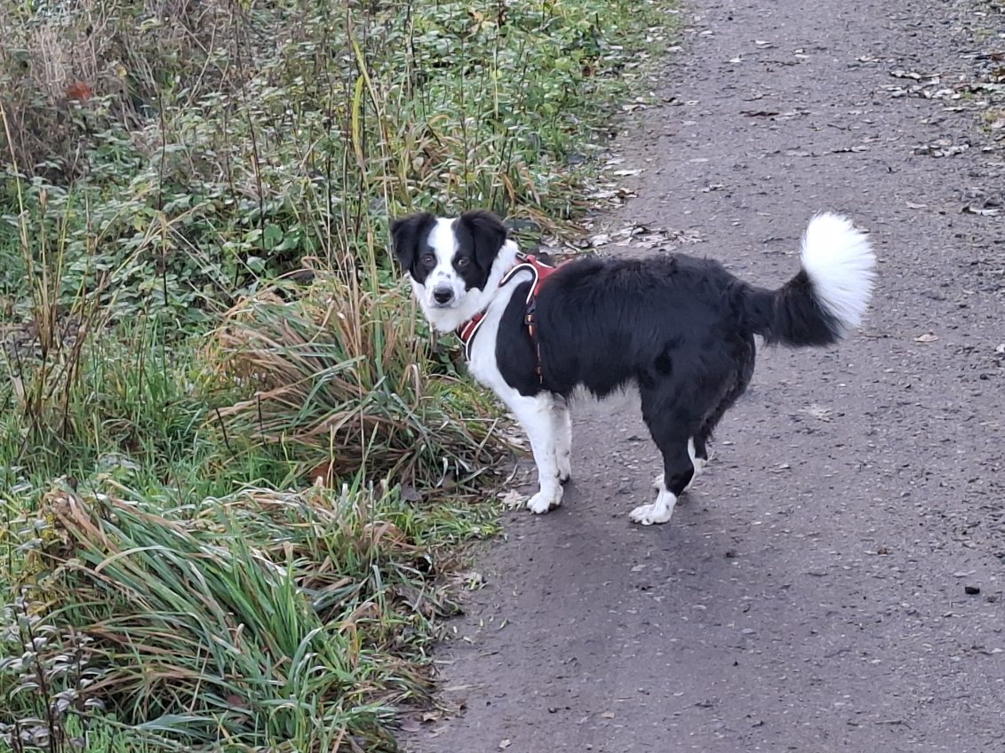 Unsere Sylvi lebt bereits seit mehr als einem Jahr in ihrer tollen Familie. Am 3. Oktober 2024 ist sie aus unserem Refugium nach Jever gezogen zu einer Familie mit einer Tochter und zwei Katzen und zwei Kaninchen in feiner Außenhaltung. Bereits nach dem ersten Kennenlernen auf der üblichen Hunderunde war klar, das passt. Wir wussten, dass Sylvi sich als Einzelhund in einer Familie wohl fühlen würde, wenn für genügend entspannte Hundekontakte gesorgt wird. Und da Sylvi über einen ausgereiften und gelassenen Charakter verfügte, war sie auch für Hundeanfänger:innen eine gute Partnerin.