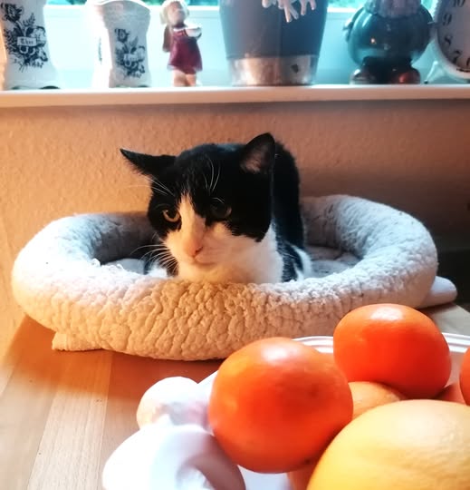Unsere Moni hatte sechzehn gute Jahre, sie war eine ganz reizende Katze, lieb und verschmust und hatte trotzdem alle ihre Kerle hier gut im Griff. Sie ließ sich nicht „die Butter vom Brot“ nehmen. Dazu hat sie viel zu gern gefuttert. Praktischerweise war die Küche für Moni ein guter Ort, die Arbeitsfläche diente zum häufigen Näpfchen füllen und obwohl Essen für die knuffige Moni immer wichtig war, musste es immer frisches Essen sein. Wenn es eine halbe Stunde gestanden hatte, mochte sie es nicht mehr und forderte lautstark frisches Futter. Sie war sehr eigen darin. Als Schlafplätzchen diente ihr fast immer unser Küchentisch, tagsüber für die nötigen Nickerchen und für die ganze Nacht zum entspannten Schlaf. Nun ist der Küchentisch ungewohnt leer.